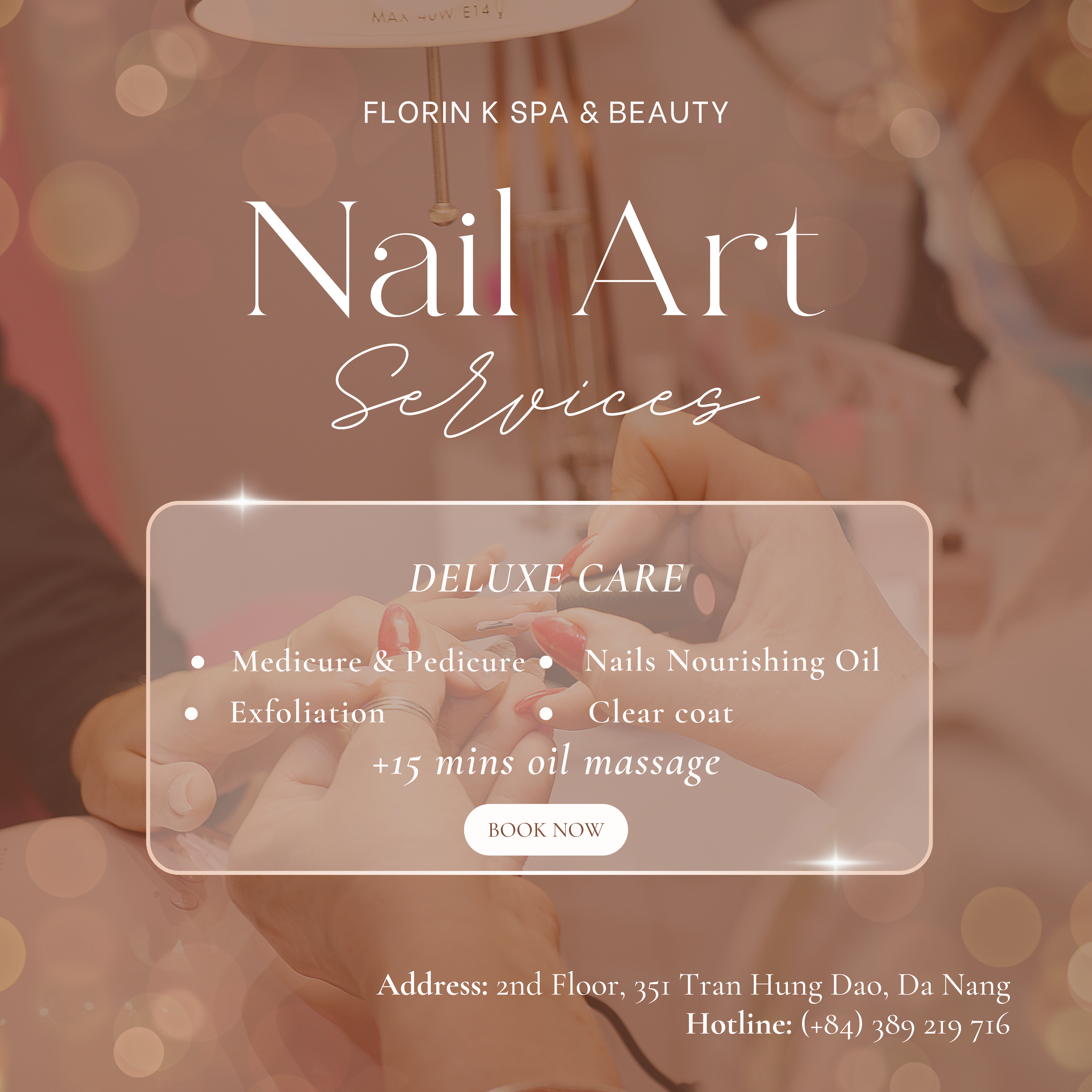 Nestled on the 2nd floor of WINK Hotel at 351 Tran Hung Dao, An Hai Tay, Da Nang, Florin K Spa & Beauty is a modern sanctuary where wellness meets style. We specialize in relaxing spa treatments, rejuvenating massages, professional hair and nail care, and refreshing beverages from our in-house juice bar. Whether you’re a local or a traveler, step into our serene space and experience personalized beauty and relaxation services designed to leave you feeling renewed from head to toe.