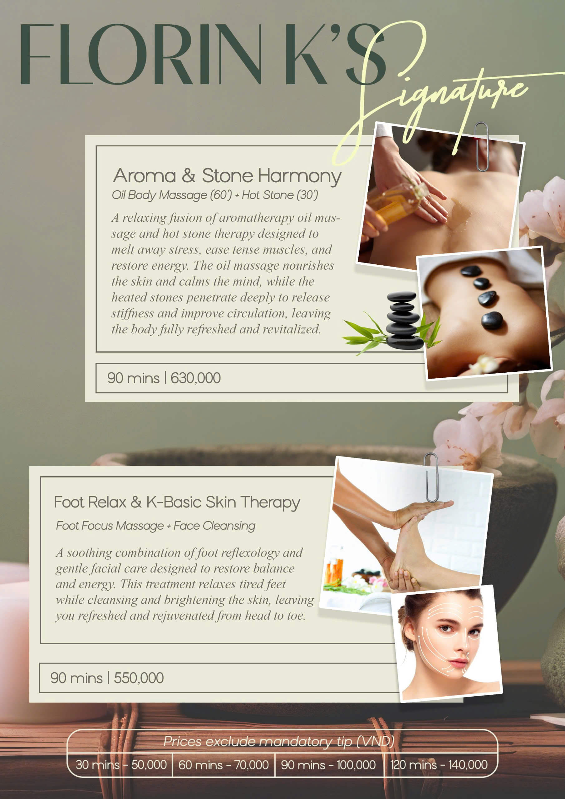 Step into a world of calm and care at Florin K Spa, where relaxation is redefined. Our spa services are thoughtfully designed to release stress, rejuvenate your body, and restore your inner balance. Whether you’re seeking a gentle facial, a detoxifying body treatment, or simply a quiet moment away from the city, our skilled therapists will tailor each session to your needs. Let the soft ambiance, soothing scents, and expert touch transport you to a place of pure tranquility.